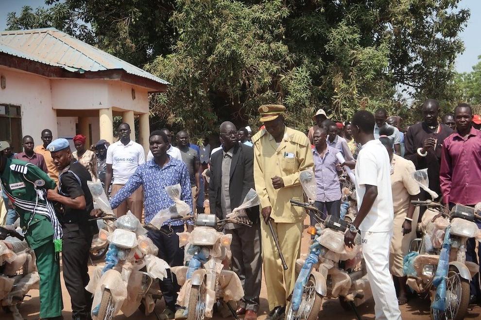 Kong Koc is a community-led peacebuilding project in greater Tonj, supported by the South Sudan Multi-Partner Trust Fund. Thirty-three motorcycles make up its latest contribution. Photos: Peter Ring Ariik Kuol/UNMISS