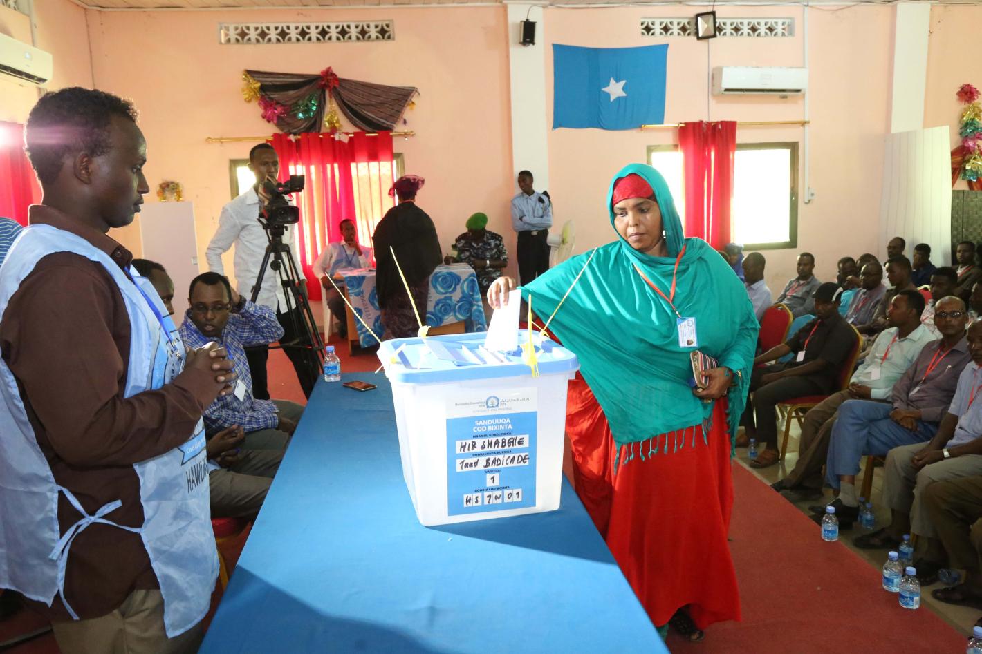 A delegate votes during the electoral process to choose members of the House of the People in Jowhar, Somalia on 3 December 2016. UN Photo