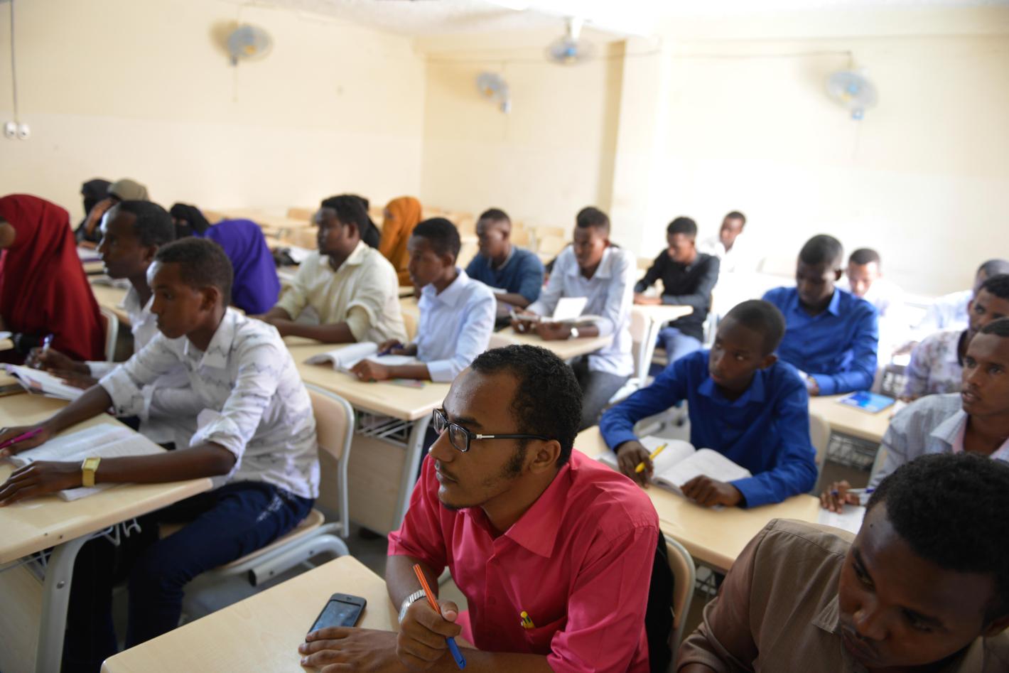 Students of Simad University, a premier private university in Mogadishu, Somalia, attend a lecture on 3 December 2016. UN Photo