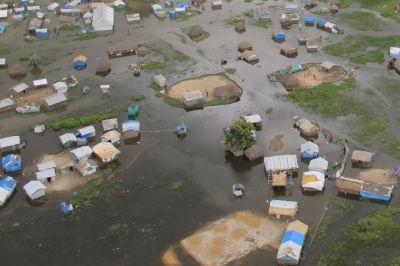 A view of flooding in the Jonglei State capital Bor during an air reconnaissance flight conducted on 12 September by members of the UNMISS Korean Engineering Company. In recent days the engineers have used excavators and oil…
