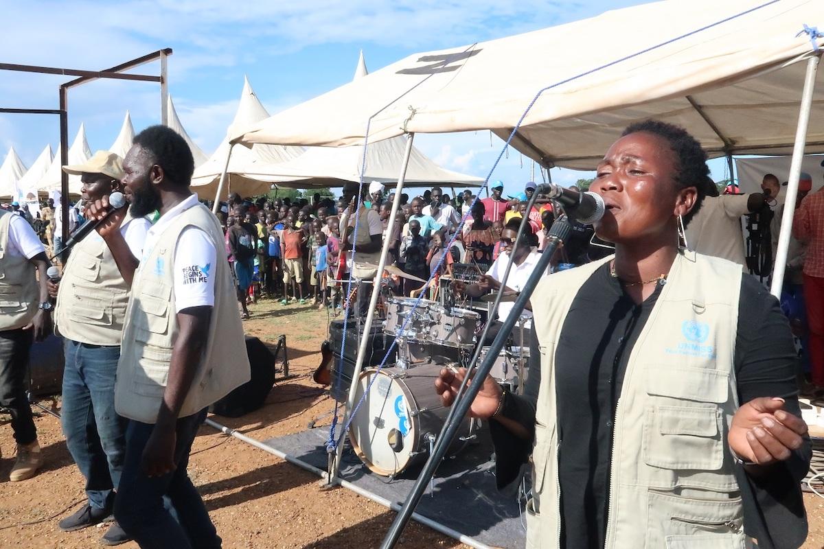 Perhaps peace begins with singing? If so, Malakal residents attending an UNMISS peace concert did their best to usher it in. Photos: Ines Surwumwe & Samson Liberty/UNMISS