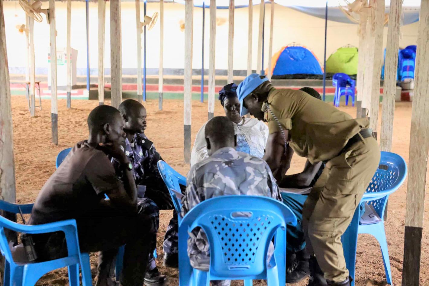 During a meeting in his Cabinet on 5 October, in the presence of his colleague in charge of Communication, the Central African Minister of Digital Economy, Posts and Telecommunications (first from right) indicated that the government has already started to take steps towards the successful organization of a Regional Forum to advance the process of adopting a community instrument against hate speech in Central Africa. Photo UNOCA/Norbert N. Ouendji.