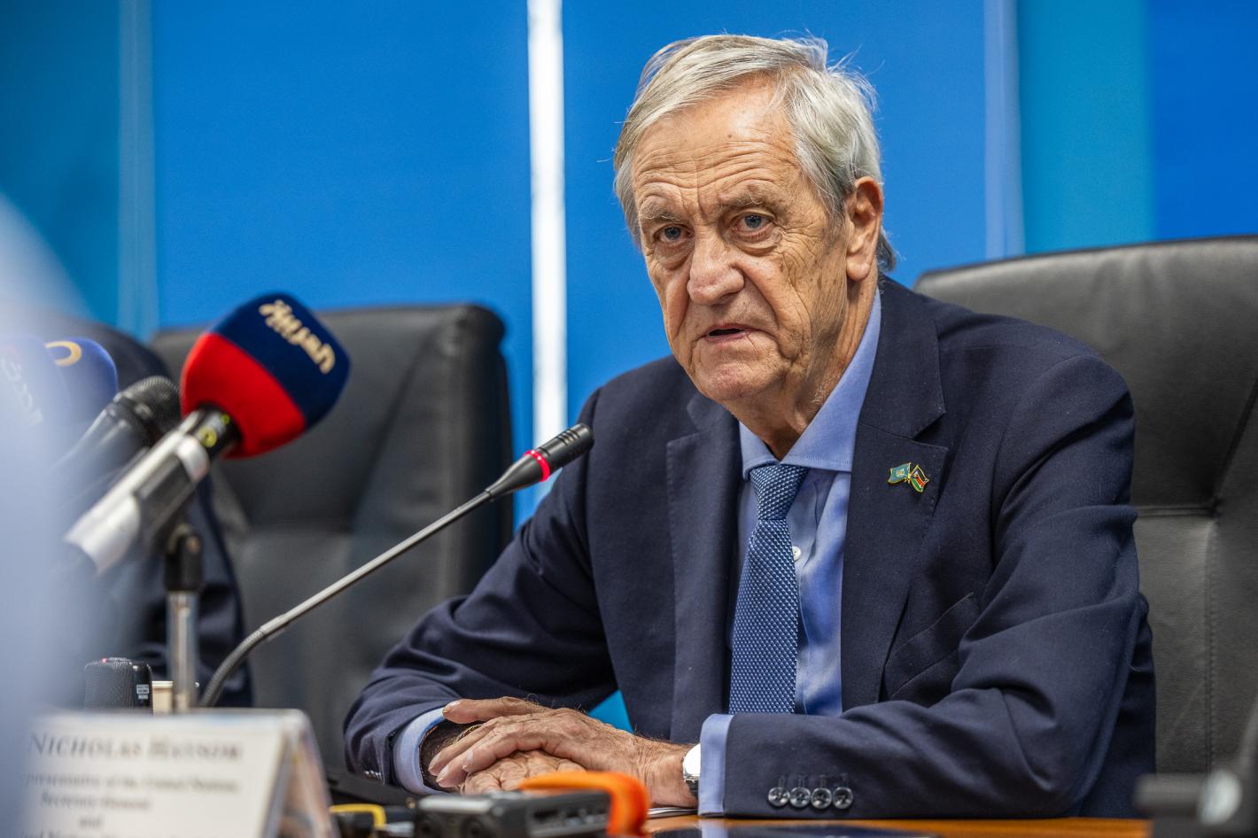 Today, Nicholas Haysom, the Secretary-General’s Special Representative and Head of the UN Peacekeeping mission, UNMISS, briefed the press on the current political situation in the country, including the urgent need by all stakeholders to galvanize political will and achieve peace benchmarks, notably the holding of free, fair, credible and transparent elections, without further delays. Photo by Gregorio Cunha/UNMISS