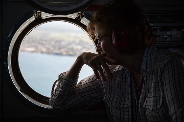 The SRSG looks through the window of MINUJUSTH helicopter on the way back from a visit in North-East of Haiti. © Leonora Baumann / UN / MINUJUSTH, 2019