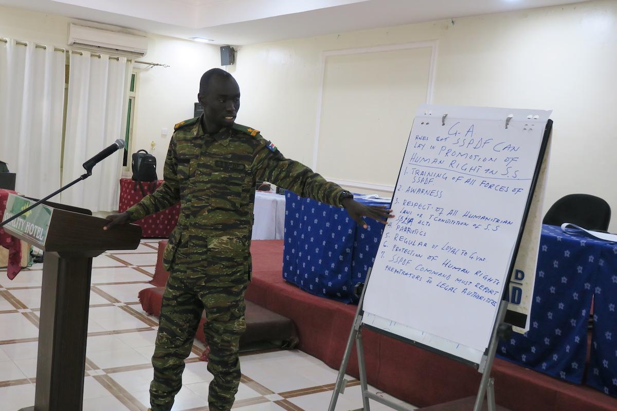 Officers of the South Sudan People's Defence Force receiving a refresher on human rights. Photos: James Sokiri/UNMISS
