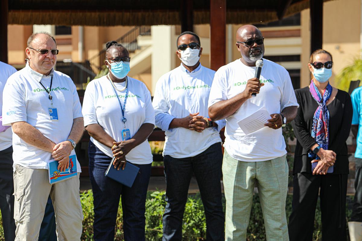 6 June 2022, Entebbe: “We only have one earth and we need to protect it.” Said Director a.i. Regional Service Centre Entebbe, Paulin Djomo at the celebration of the World Environment Day on 6 th June. “This is a joint effort…
